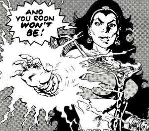 Brimo forms a bolt of pure psychic energy. (COMIC: Doctor Who and the Time Witch)