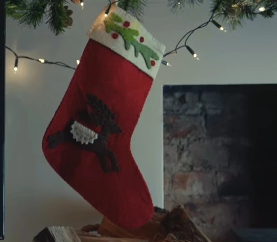 A stocking featuring a depiction of a reindeer. (TV: 2016 BBC Christmas ident)