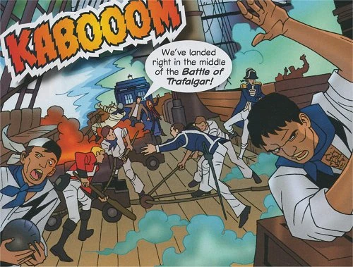 - The Doctor was previously present at the Battle of Trafalgar during his second incarnation. (PROSE: H.M.S. Tardis) He would be present for the battle again during his twelfth incarnation. (COMIC: Ghosts of the Seas)
