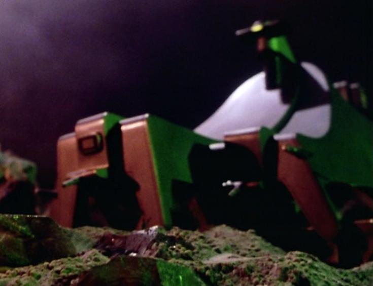 The sandminer Storm Mine 4 in a desert. (TV: The Robots of Death)