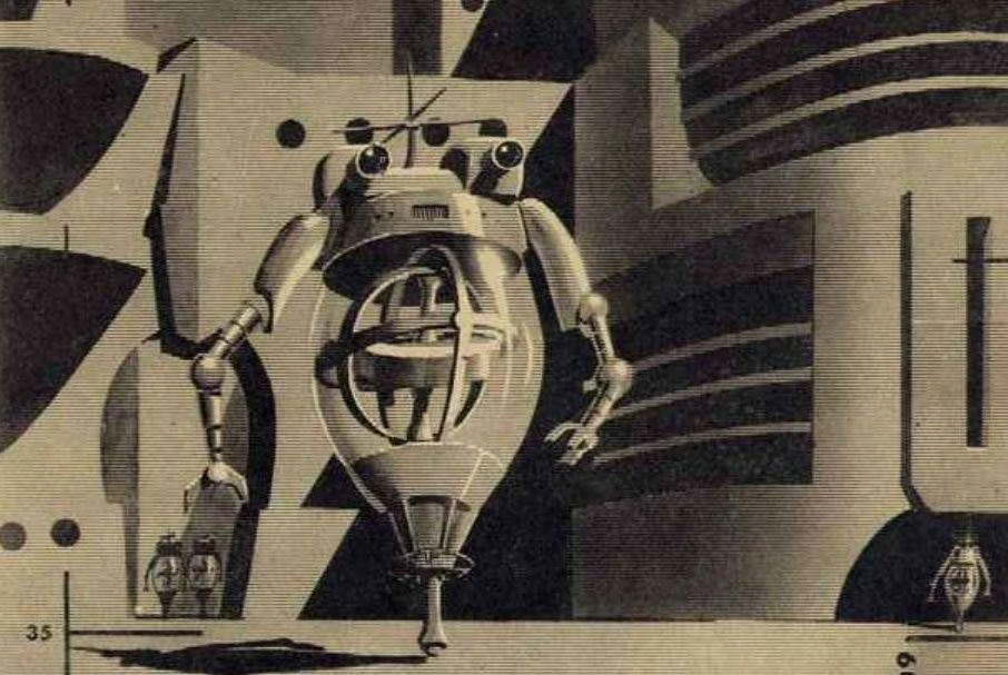 Elsewhere, it is announced that the space freighter Electrode 909 is to fly again after having been brought back from Mellates by salvage ships. Experts claim the ship has been rebuilt and faults which developed on her maiden flight have been ironed out. Unrelatedly, several dozen motor car manufacturers and buyers from all over the Solar System fly into London Spaceport in order to attend the preview showing of the 2066 Motor Show, to be held in a week's time.
