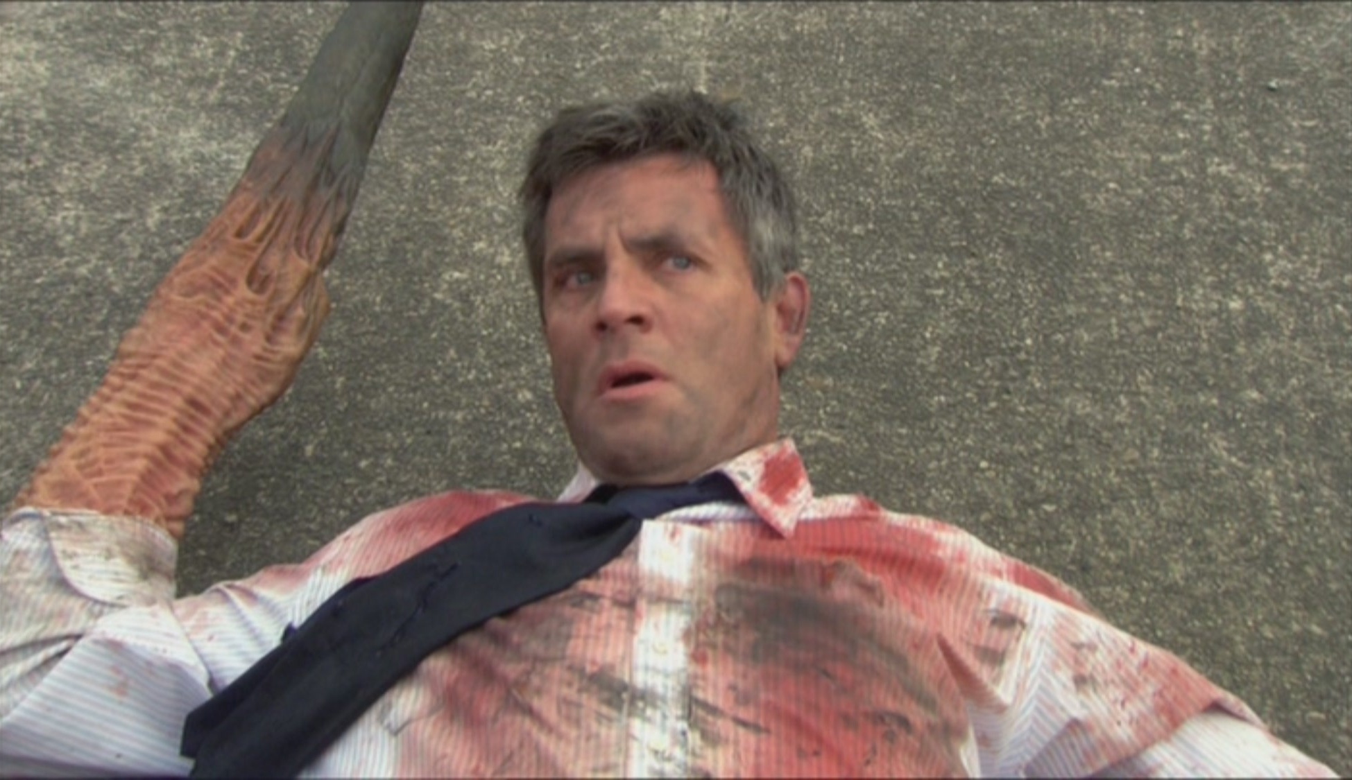 Elsewhere, Patrick Grainger, the leader of the local council, begins his day with his family. When the doorbell rings, he goes to answer the door. One of the sleeper agents, David, is at the door. After confirming Patrick's identity, David morphs his hand into a spike and runs Patrick through with it repeatedly, in front of Patrick's family. Patrick's wife begs for the lives of her children, but David makes no reply other than to stab her husband one more time and leave. Meanwhile, another sleeper uses a fuel tanker to destroy both a motor way and an underground fuel pipeline used by the military in emergencies.