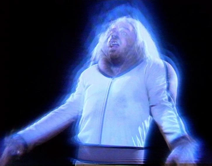 The infected Sorenson is empowered by the neutron accelerator. (TV: Planet of Evil)