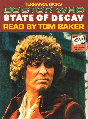 State of Decay was a direct-to-cassette version of the televised story of the same name. It was distinct from both the TV story and the Target print novelisation. With a runtime of a mere 60 minutes, and a more or less in-character reading by Tom Baker, it had a very different format to the other two versions of this story.