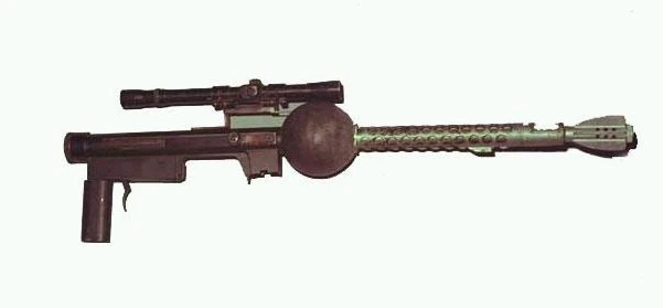 The props were later used as early props for the original Star Wars movie though this original design appears not have been used on-screen. The mortar fins were re-used on Ponda Baba's custom DL-21 blaster pistol prop (not seen on-screen either). This blaster type with the fins was eventually used on screen for Hoth soldiers in Empire Strikes Back.
