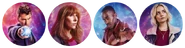 Starkidsoph mentioned about differentiating between characters and real-world creatives / counterparts, so I've mocked this design up. Admittedly, it's going to be tricky given that the first 2 circles are 14 and Donna, followed by real-world RTD and Bad Wolf (ideally I think we'd have Yasmin Finney and NPH? but we can't make pages for their characters yet so difficult position for now) but I thought maybe the top row could have subtle backgrounds, whilst the bottom row has white backgrounds? (An argument could be made for giving RTD a white background too, so all real-world tabs have the white.) I've also used different promo images for 14/Donna, to deviate away from the discussion regarding harsh colour palettes. Again, just a mock-up I'm throwing out there :)