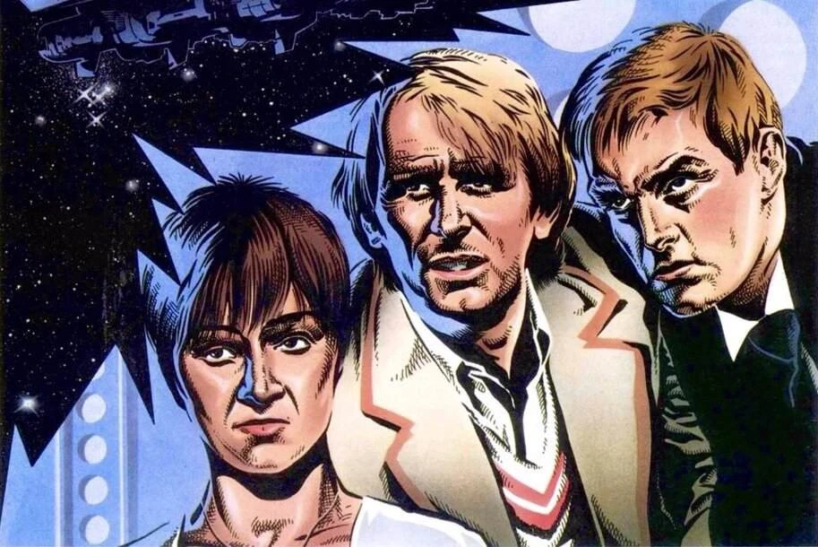 Tegan with the Doctor and Turlough. (PROSE: Birth of a Renegade)