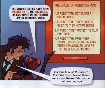 In his private life, the Doctor often dressed much less formally. When he slept, he wore a pair of boxers decorated with illustrations of the TARDIS. He would often sleep in a plain T-shirt, and, while he would usually choose between suits during the day, he also would occasionally wear less formal attire if cooking or spending time with Rose-the-Cat and K9. (COMIC: A Rose by Any Other Name) He also owned a pair of pyjamas which more closely resembled his pinstriped suit. (COMIC: To Sleep, Perchance to Scream)