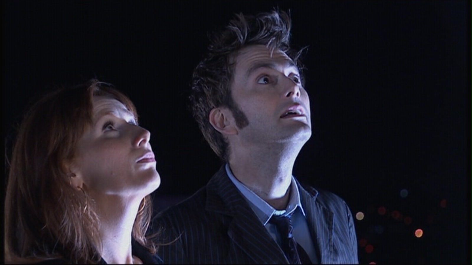 He would stare longingly with a look of despair when depressed, (TV: The Girl in the Fireplace, Doomsday, The Runaway Bride, Voyage of the Damned, The Doctor's Daughter, Forest of the Dead, Journey's End, The End of Time) or in deep thought. (TV: 42, The Unicorn and the Wasp, Midnight, The Stolen Earth, Planet of the Dead, The Waters of Mars, The End of Time)