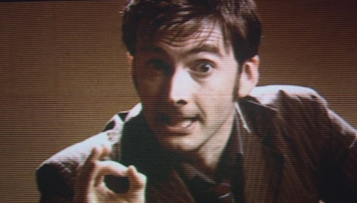 He would sometimes pull at his jaw when thinking, (TV: Fear Her, Army of Ghosts, Smith and Jones, Evolution of the Daleks, Utopia, The Sound of Drums, Last of the Time Lords, Voyage of the Damned, The Waters of Mars, The Day of the Doctor) and often held his arms behind his back, (TV: The Christmas Invasion, Tooth and Claw, The Idiot's Lantern, The Satan Pit, Fear Her, Army of Ghosts, The Runaway Bride, Smith and Jones, The Family of Blood, The Sound of Drums, Last of the Time Lords, Time Crash, Voyage of the Damned, The Fires of Pompeii, The Sontaran Stratagem, The Doctor's Daughter, The Unicorn and the Wasp, The Next Doctor, Planet of the Dead, The Waters of Mars, Dreamland) or casually had his arms folded. (TV: Children in Need Special, School Reunion, Rise of the Cybermen, The Age of Steel, The Idiot's Lantern, Fear Her, Doomsday, Smith and Jones, The Infinite Quest, The Shakespeare Code, Evolution of the Daleks, The Lazarus Experiment, 42, The Sound of Drums, Last of the Time Lords, The Fires of Pompeii, Planet of the Ood, The Sontaran Stratagem, Silence in the Library, The Waters of Mars, The End of Time, The Day of the Doctor)