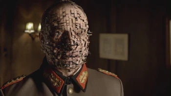 The Teselecta had a crew of 421 people led by Captain Carter. They could change its appearance to that of any humanoid being. The Teselecta visited 1938 intending to punish Adolf Hitler but realized they had arrived too early in his time stream. At the same time, the Doctor's TARDIS crashed into Hitler's office (due to Mels shooting the time rotor) and knocked the Teselecta to the ground, inadvertently saving Hitler. The crew witnessed Mels' regeneration into her River Song incarnation and recognised her as the worst war criminal in the universe for killing the Doctor in the future.