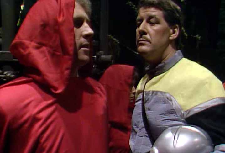 Deep in the caves, the masked madman Sharaz Jek has monitored the broadcast between Morgus and Chellak. He is delighted at Peri's beauty. Meanwhile, Chellak tries to reason with Morgus in an attempt to get him to relent on his decision to execute the prisoners, telling him that Peri and the Doctor have been fully cooperative and might give them more information if they are kept alive. But Morgus refuses, telling Chellak that there can be no negotiations with traitors.