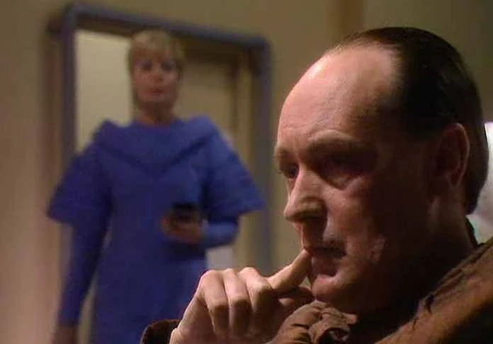 Another unique aspect of the production was its use of Shakespearian soliloquy. Morgus, the principal villain of the piece, sometimes turned away from the characters and spoke his thoughts aloud, often appearing to break the fourth wall in the process by gazing into the camera. Though apparently the result of a mistaken impression about the script by actor John Normington, Harper kept the asides in, feeling they effectively ramped up the dramatic tension. (DCOM: The Caves of Androzani)