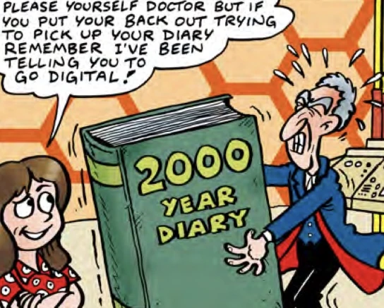A week after he borrowed a hatstand from a fellow Gallifreyan, the Doctor ran away from Gallifrey with the TARDIS, and a big brass candlestick. (COMIC: The Daft Dimension 519)