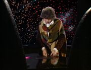 - When the Doctor hops down the corridor in part two, he knocks the camera as he goes past.