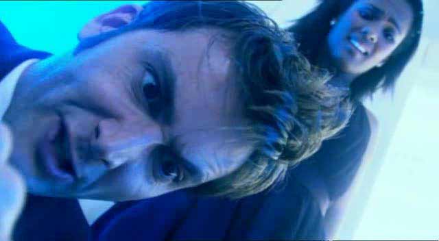 The Doctor and Martha emerge in Lazarus' office, searching for him. As Martha suggests trying back at the reception, her voice trails off as she spots a bony leg sticking out from behind the desk. Investigating, they find the shriveled husk of Lady Thaw; the Doctor says she had all the life energy drained to supply energy to the processes caused by Lazarus' fluctuating DNA. Worried he will kill again, they go back downstairs, only to learn that he has gone back upstairs with Tish. They rush off, the Doctor accidentally spilling a drink on Francine. A mysterious man replaces her drink and warns that Martha should be more careful in choosing her friends.