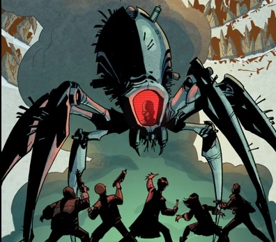 The wormhole, running in the direction opposite to that wished by the Matrix, drew in aircrafts and starships from various points in space and time and trapped them inside the "sky world", alongside the Matrix itself as well as he Doctor and his companion Clara Oswald. While in the sky world, the Matrix built itself several spider-like robotic bodies, as well as an army of pterodactyl-like robots, out of the scrap metal provided by the various crashed spaceships. Just as it seemed to make its escape using an atomic bomb brought to the sky world in the American aeroplane Sky Jack, the Matrix was stopped by the Doctor, who trapped the mad intelligence forever by connecting both ends of the wormhole together into an ouroboros shape. (COMIC: Sky Jacks)