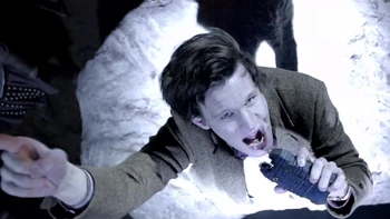 - While communicating to the alien fleet, the Doctor shouts, "I -- AM -- TALKING!!!" to silence the ships, similar to the Ninth Doctor addressing the Nestene Consciousness (TV: Rose) and the Tenth Doctor addressing Eddie Connolly. (TV: The Idiot's Lantern)
