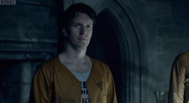 Amy reminds the Doctor that Rory is with Jennifer, who was out of her harness. The Doctor, Amy and Dicken run after Rory and Jennifer, finding the aftermath of Jennifer's brief mental snapping. Recalling that the Doctor called the Gangers early technology, Dicken wonders why he's really at the factory. The Doctor gives a look towards Amy before insisting that the Gangers aren't violent, but scared and angry, and he needs to talk to them if he is going to fix what has happened. They continue through the monastery, but find many of the corridors blocked by leaking acid puddles. The Doctor proposes going to fetch the TARDIS and rushes off; Amy also goes off on her own to search for Rory. Jimmy returns to the dining hall and sends Buzzer and Dicken off to retrieve the acid suits.