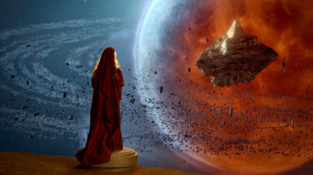 Clara Oswald wants to see something awesome, so the Eleventh Doctor whisks her off to the inhabited rings of the planet Akhaten, where the Festival of Offerings is in full swing. Clara meets the young Queen of Years as the pilgrims and natives ready for the ceremony. But something is stirring in the pyramid, and a sacrifice will be demanded.