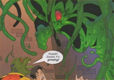 A school lesson in Leeds is interrupted by one of the pupils — Archie, sneezing. From his nose erupts a giant snot monster. With every sneeze more snot pours out. The Doctor and Decky Flamboon arrive an hour later when the school and the streets are covered in snot and a giant snot monster is on the run. A scan by the Doctor with his sonic screwdriver finds the snot is harmless but is also alien! Trapping the monster down an alley they are alarmed when they realise that the creature is growing at a rapid rate. But the creature is stopped in its tracks by a small yappy poodle. The Doctor reaches for his sonic screwdriver and by reversing the signal the creature is reduced to its former size. Returning to the school, the Doctor finds Archie and stuffs it back up his nose. The Doctor explains that the boy is actually an alien called Archie in disguise. Archies are two aliens one inside the other which causes chaos if they are separated. The Doctor suggests that if Archie is to continue studying in an Earth school he should at least carry a hankie!