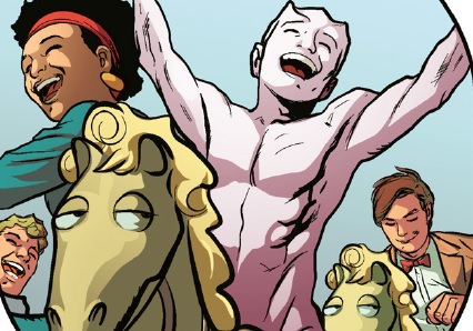 The Sapling with Alice and the Doctor on a carousel at the Village Green Festival. (COMIC: Fooled)