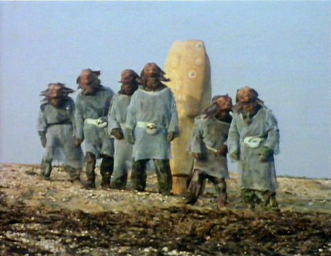 - In episode one, the script called for Jo Grant and the Doctor to climb up a ladder to get into a sea fortress. The ladder proved too slippery for Katy Manning, so stuntman Stuart Fell did the shot dressed as Jo.