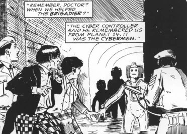- It is unclear how the Doctor or Jamie are aware of the reference to Planet 14 from the events of TV: The Invasion, as their positive identification by the Cyber Module was made in confidence to Tobias Vaughn alone, so no other character would possess knowledge of the exchange. Furthermore, Jamie recalls the Cyber-Controller mentioning it, rather than the Cyber Module, though Jamie getting the terminology wrong is a possible excuse. If the Doctor and Jamie are remembering correctly, this points to the possibility of a further, unseen adventure with the Second Doctor, Jamie and the Brigadier fighting the Cybermen.