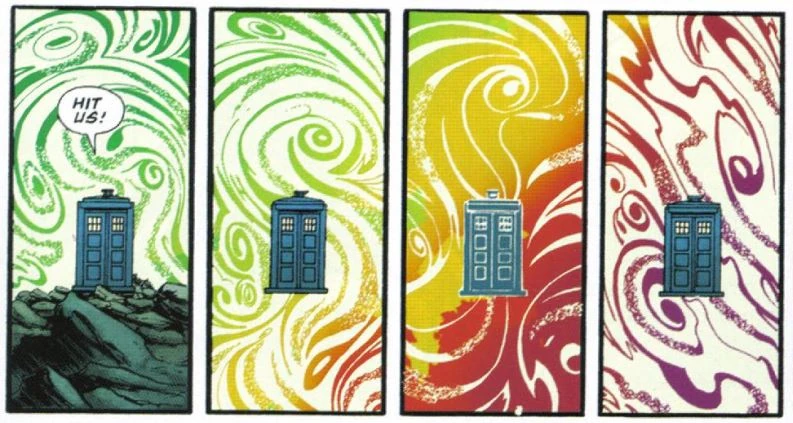 A time field hits the TARDIS. (COMIC: The World Shapers)