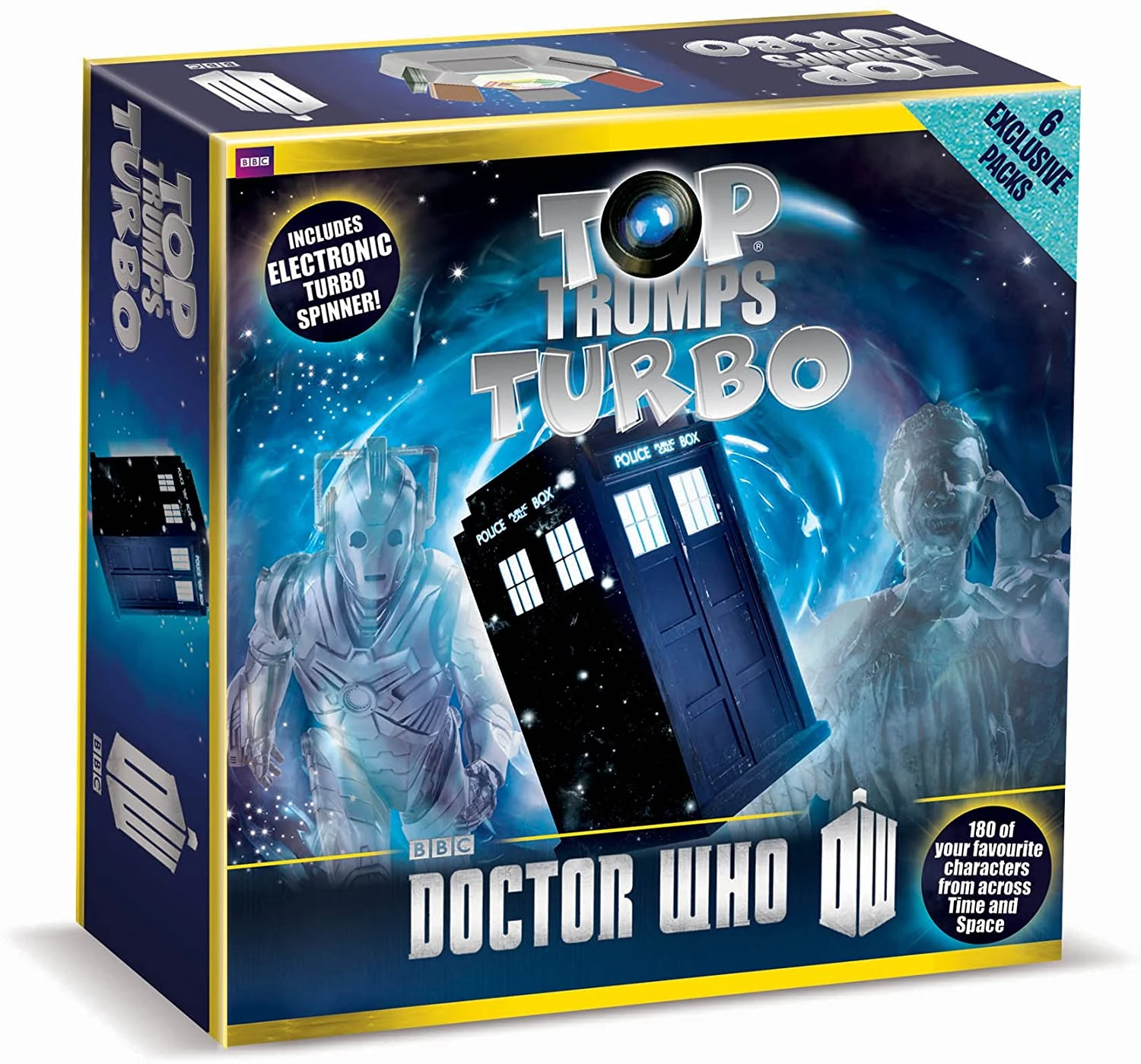 The perfect product for anyone who loves Doctor Who and Top Trumps. To celebrate 50 years of time travel and adventures, Top Trumps has created this special edition of Turbo - featuring 6 exclusive packs of Aliens, Companions, Robots, Stories, Enemies and Humans. Hit the Turbo Spinner and race through the mini games with your favourite Who characters, Doctors and scary monsters as you try to be the Turbo Champion![1]