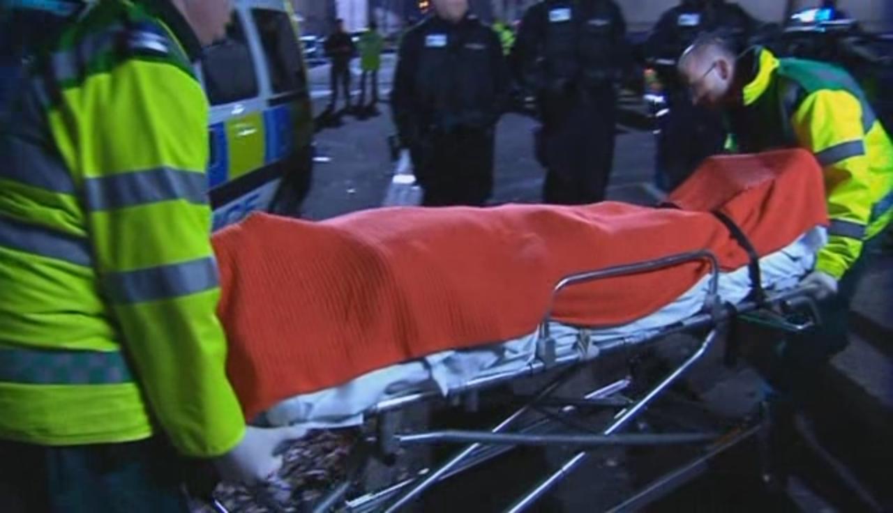 On Christmas Eve, Donna is at a Christmas party with her friends. She has just been promoted to Jival Chowdry's personal assistant. Suddenly the Racnoss Webstar attacks London, and is destroyed by the army at a terrible cost. During the chaos, Alice stares at Donna's back, looking terrified. When Donna acts astonished that Alice's attention is focused on her despite the ongoing chaos, Alice, terrified, says that there is something on Donna's back. After this, Donna runs to the Webstar's general location. There she finds an ambulance. Near the ambulance and a group of UNIT vehicles, Donna overhears a UNIT officer talking into a radio about "the Doctor" who drowned beneath the Thames. As the Doctor's body is loaded into an ambulance, a hand falls out of the stretcher, dropping a sonic screwdriver. As Donna walks away, Rose Tyler comes running down the street and asks for information about the body that has just been loaded into the ambulance. She is stunned to hear that it was the Doctor, despite Donna's assurances that it could have been any doctor. Rose vanishes moments later.