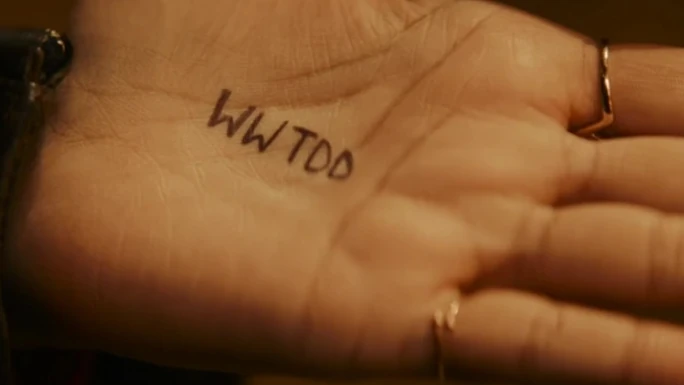 WWTDD written on Yaz's hand. (TV: War of the Sontarans)