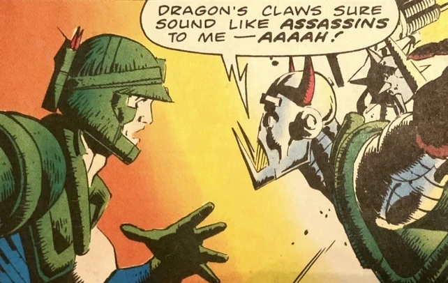 - This 22-page story consists of a reprint of the last page of the Marvel UK Dragon's Claws comic story Wild in the Country! followed by the comic story from the next issue, commonly called Here's Death's Head!, without its last page.