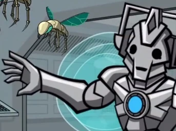 A Cyberman with time flies. (COMIC: A Stitch in Time)